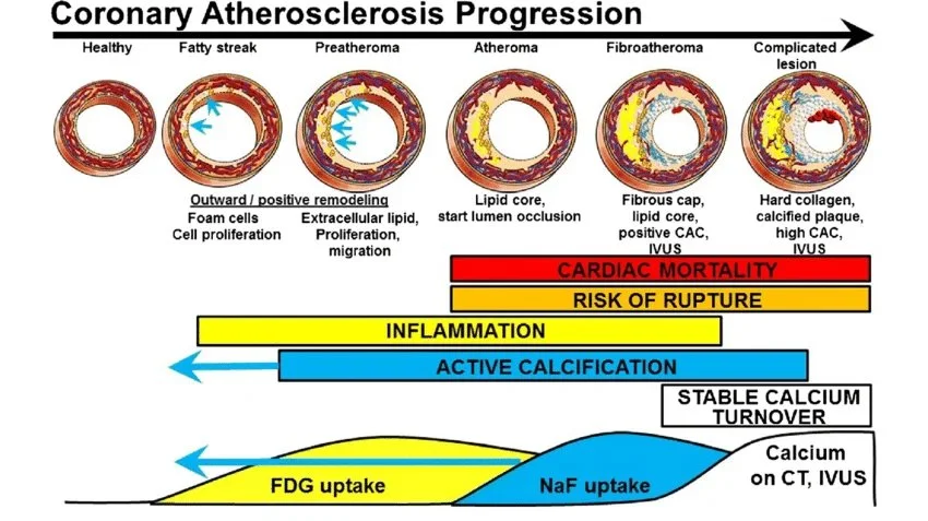 And below are the six types of plaque and their progression. My plaque is in stages 4-6. The later the stage, the more difficult to reverse. I am not sure the calcified plaque can be reversed, but my thought is that if bone can demineralize, what we call osteoporosis, why can’t diseased calcified plaque be demineralized? I have some really good leads on how the body can do this if you set the right healing conditions.