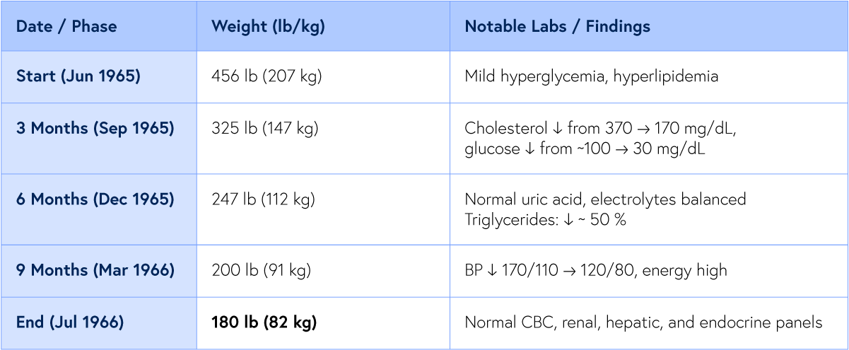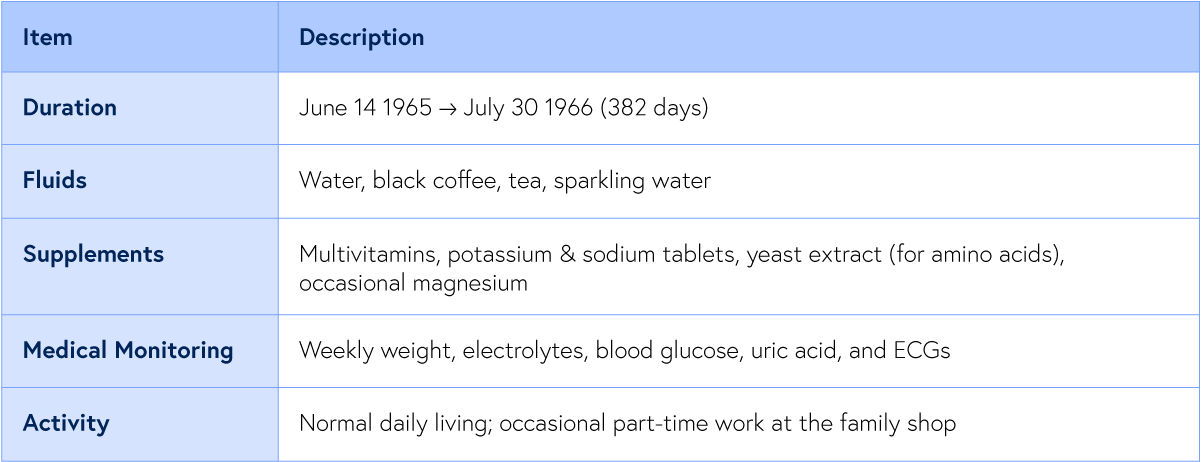 “Prolonged fasting should not be attempted without close medical supervision. Nevertheless, this case shows the remarkable adaptability of human metabolism.”