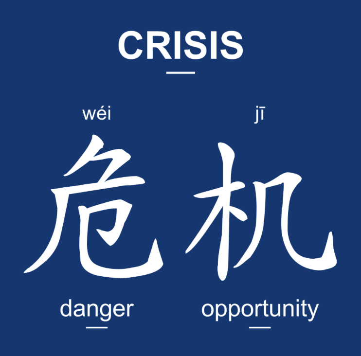 Crisis in Chinese is composed of two words together: Danger and Opportunity.